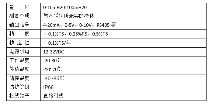 液位型變送器采用擴散硅作為敏感元件,并經(jīng)過計算機自動測試,同時電路采用放大集成,不便于雷擊、截頻設(shè)計、寬電壓供電,產(chǎn)品底部采用不便于堵塞、不便于結(jié)垢設(shè)計,電纜線采用接線反向和過壓保護、限流保護,同時直接投入現(xiàn)場,安裝方便,以上特點充分發(fā)揮了產(chǎn)品溫漂小、精度高、穩(wěn)定性好等特點。產(chǎn)品也將應(yīng)用于石油、化工、電廠、供水、水庫等自動化系統(tǒng)的過程智能測量與控制